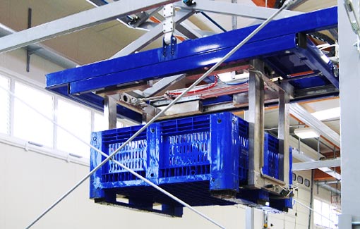 UNI ROBOCLAMP, kasaların bir toplama istasyonundan alınarak istifleme istasyonlarına otomatik bir şekilde iletilmesini i sağlar. Bu cihaz, sağlam bir çelik kiriş boyunca ilerleyerek dikey pantografik şekilde hareket eden bir kelepçeden (kıskaç) oluşur. Kompakt boyutları, işleme odasının yüksekliğinin en iyi şekilde kullanılmasını sağlar.
